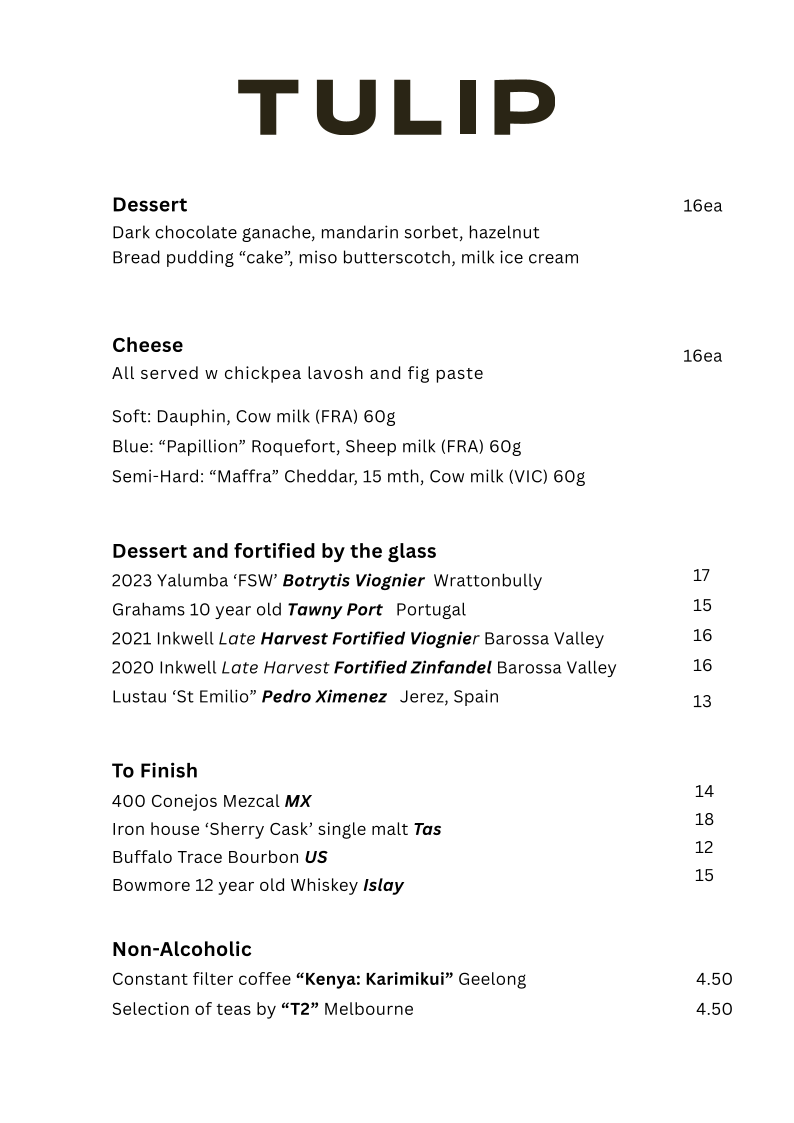 Many choose Tulip’s offerings for special occasions or an evening out when the pace calls for a meal that allows conversation and enjoyment alongside thoughtful wine or cocktail pairings. The dessert and fortified wine selections similarly suit the calm closing of a meal, providing gentle sweetness without overwhelming richness.